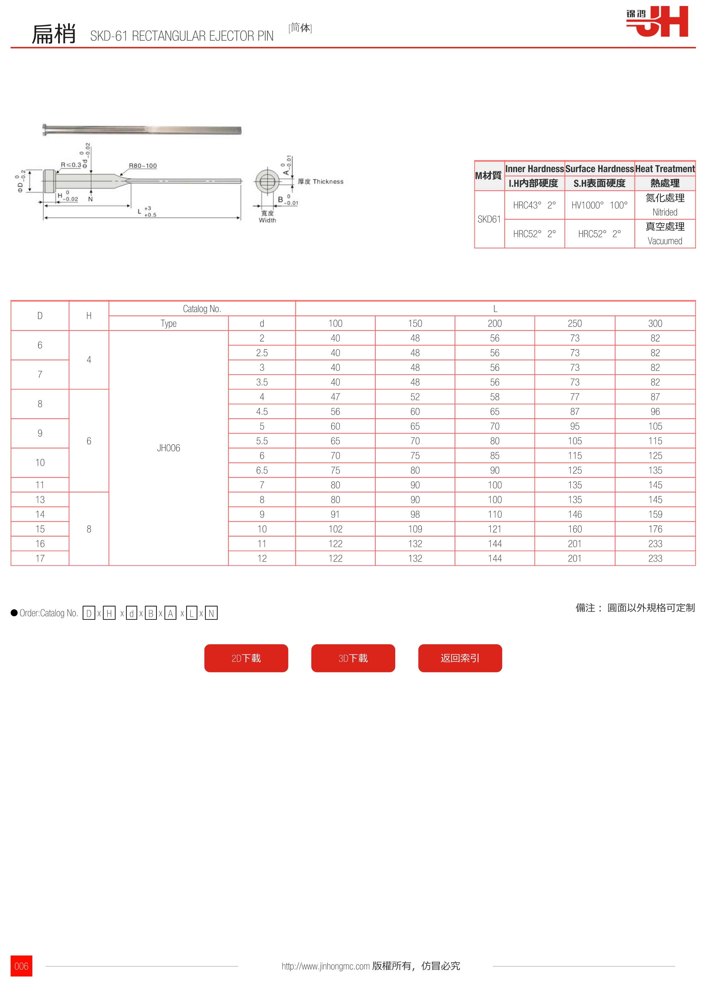 | HRC52°±2° | HRC52°±2° | 真空處理 Vacuumed |