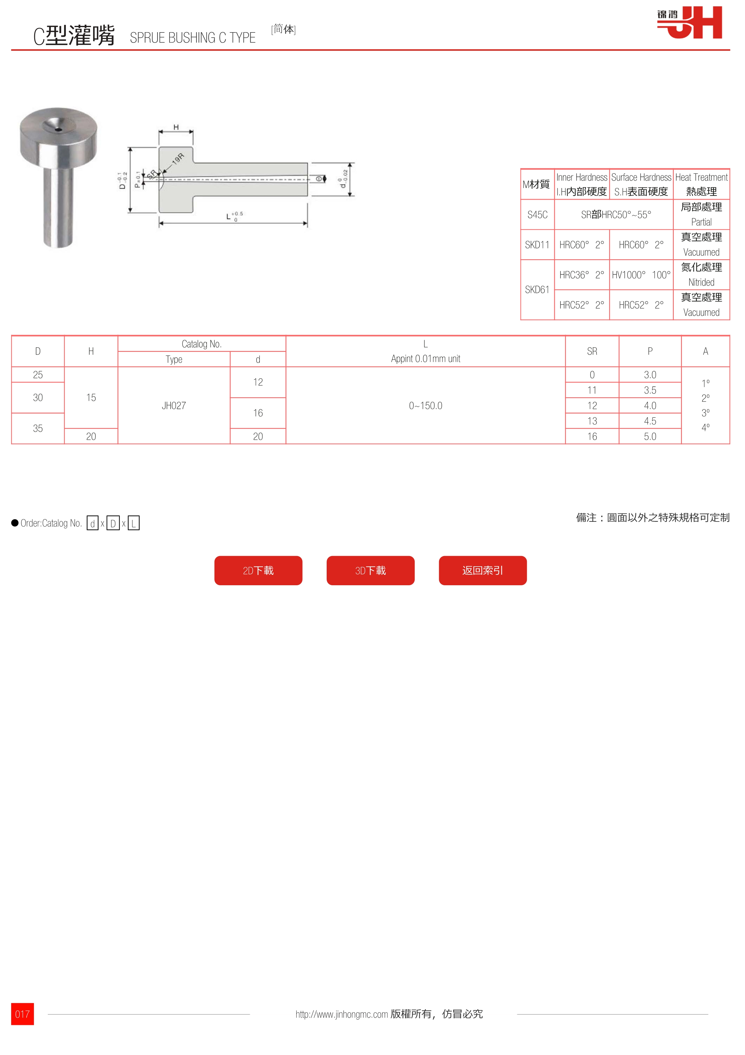 | SKD11 | HRC60°±2° | HRC60°±2° | 真空處理 Vacuumed |