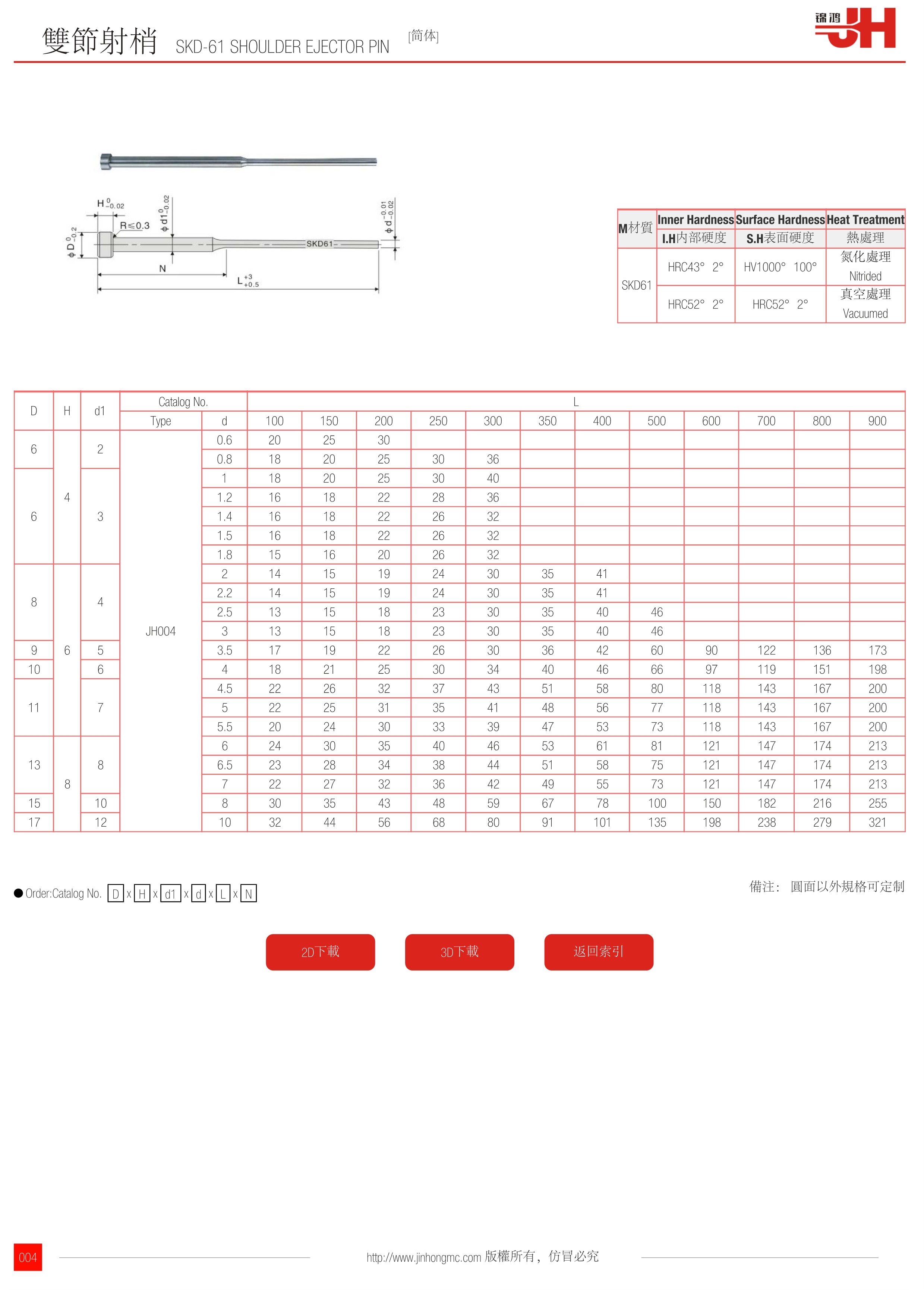 | D | H | d1 | Catalog No. | L | ||||||||||||