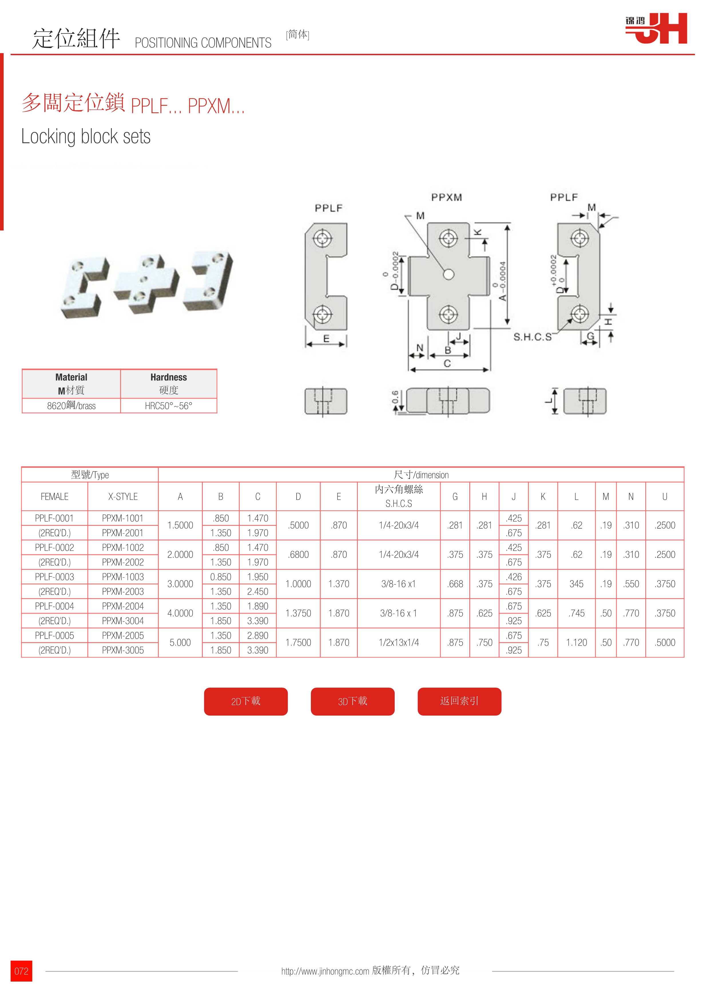 | PPLF-0001 | PPXM-1001 | 1.5000 | .850 | 1.470 | .5000 | .870 | 1/4-20x3/4 | .281 | .281 | .425 | .281 | .62 | .19 | .310 | .2500 |