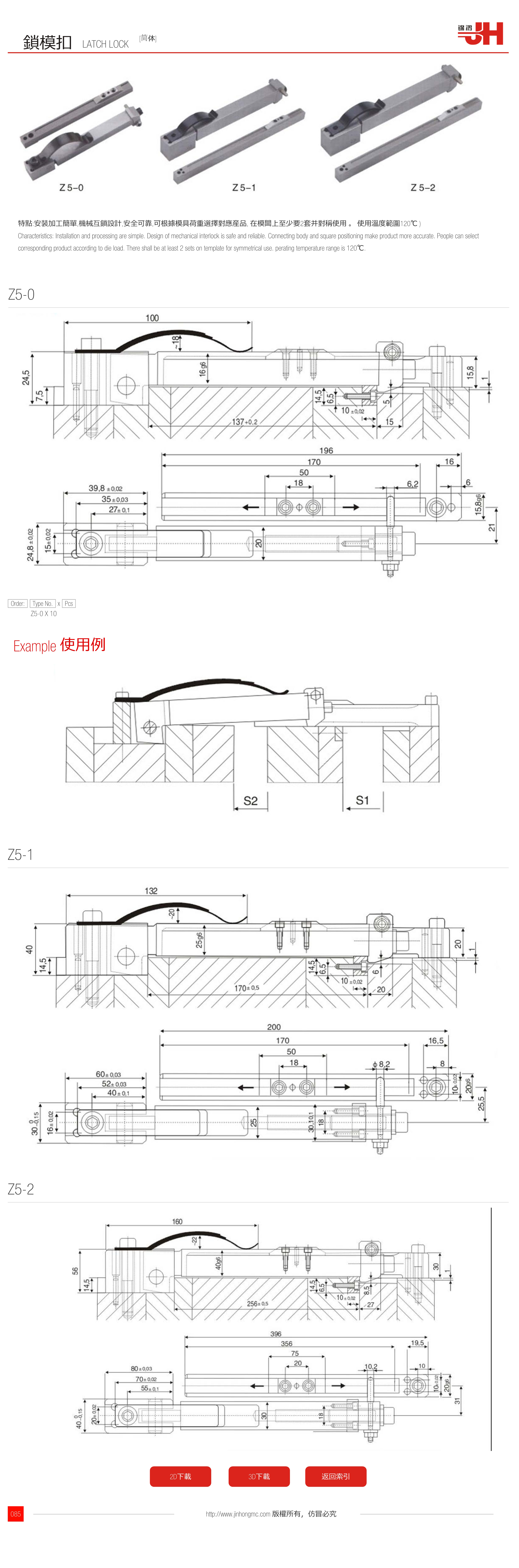 特點:安裝加工簡單,機械互鎖設計,安全可靠,可根據模具荷重選擇對應産品,