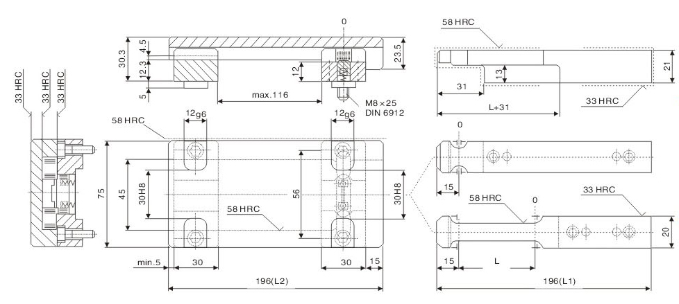 Characteristics: Installation and processing are simple. Design of mechanical      interlock is safe and      reliable. Connecting body and square positioning make product      more accurate. People can select      corresponding product according to die load.      There shall be at least 2 sets on template for      symmetrical use. Operating temperature range is 120℃.
