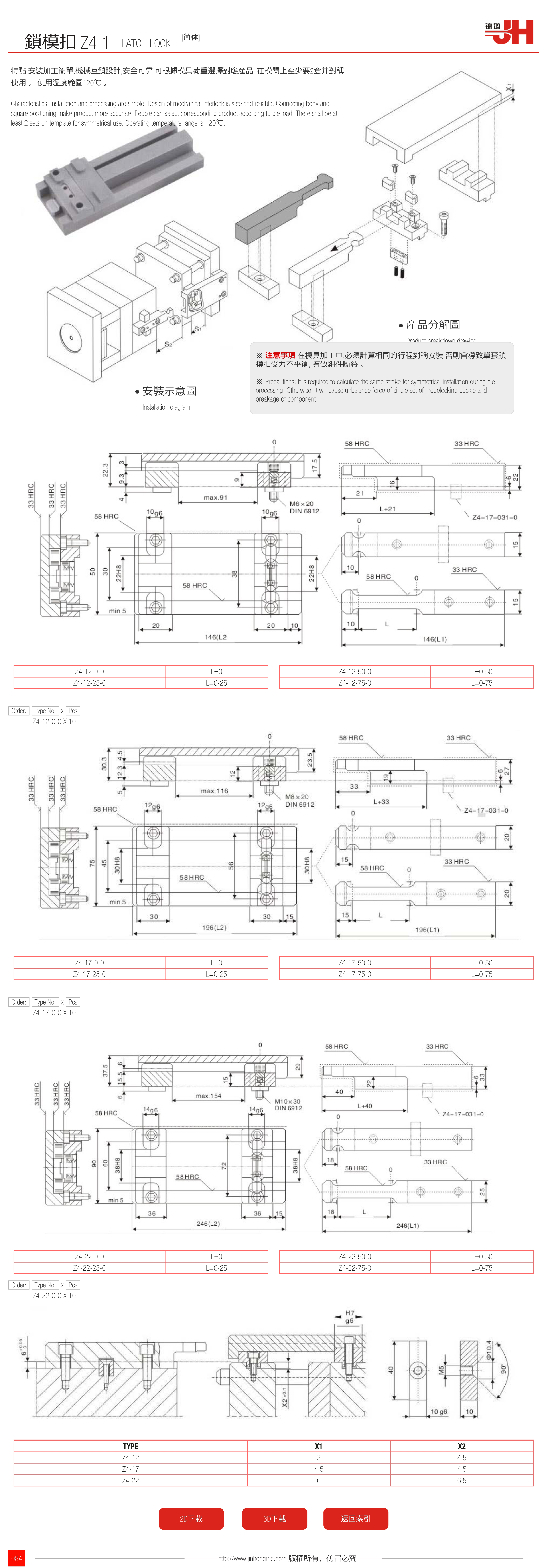 ※ 注意事項 在模具加工中,必須計算相同的行程對稱安裝,否則會導(dǎo)致單套鎖模扣受力不平衡, 導(dǎo)致組件斷裂 。