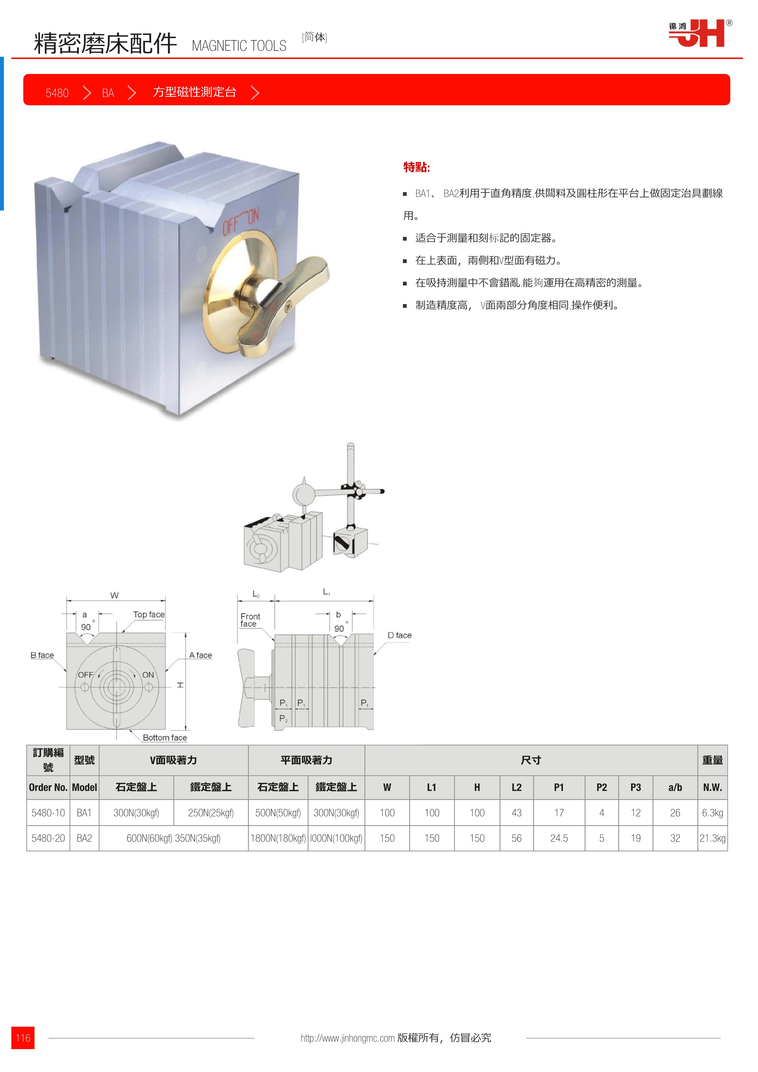BA1、 BA2利用于直角精度,供板料及圓柱形在平臺上做固定治具劃線用。