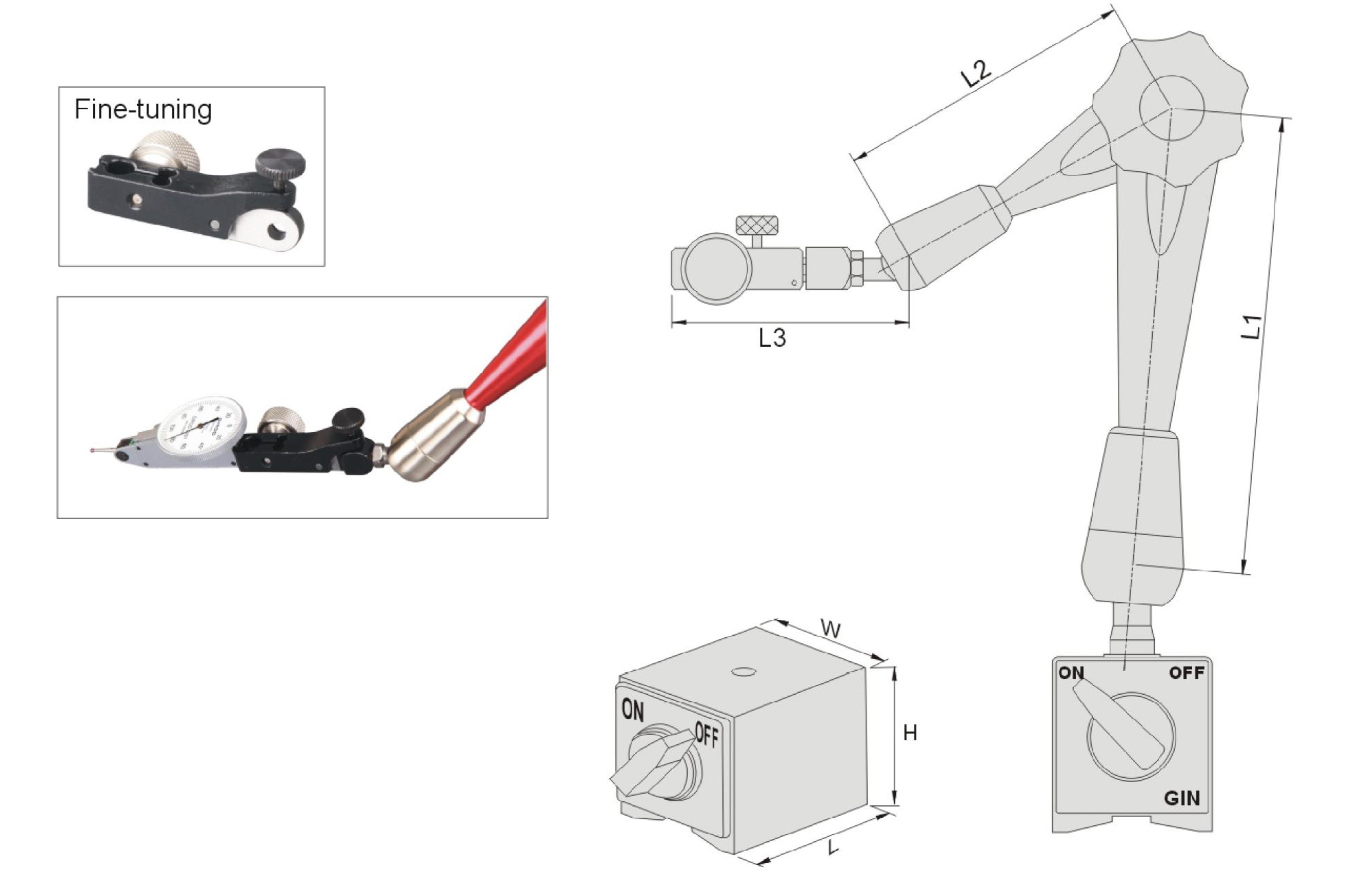 | 訂購編號 | 型號 | 杠桿規(guī)格 | L3 | 磁性座規(guī)格 | 吸力(N) | 重量 | |||||