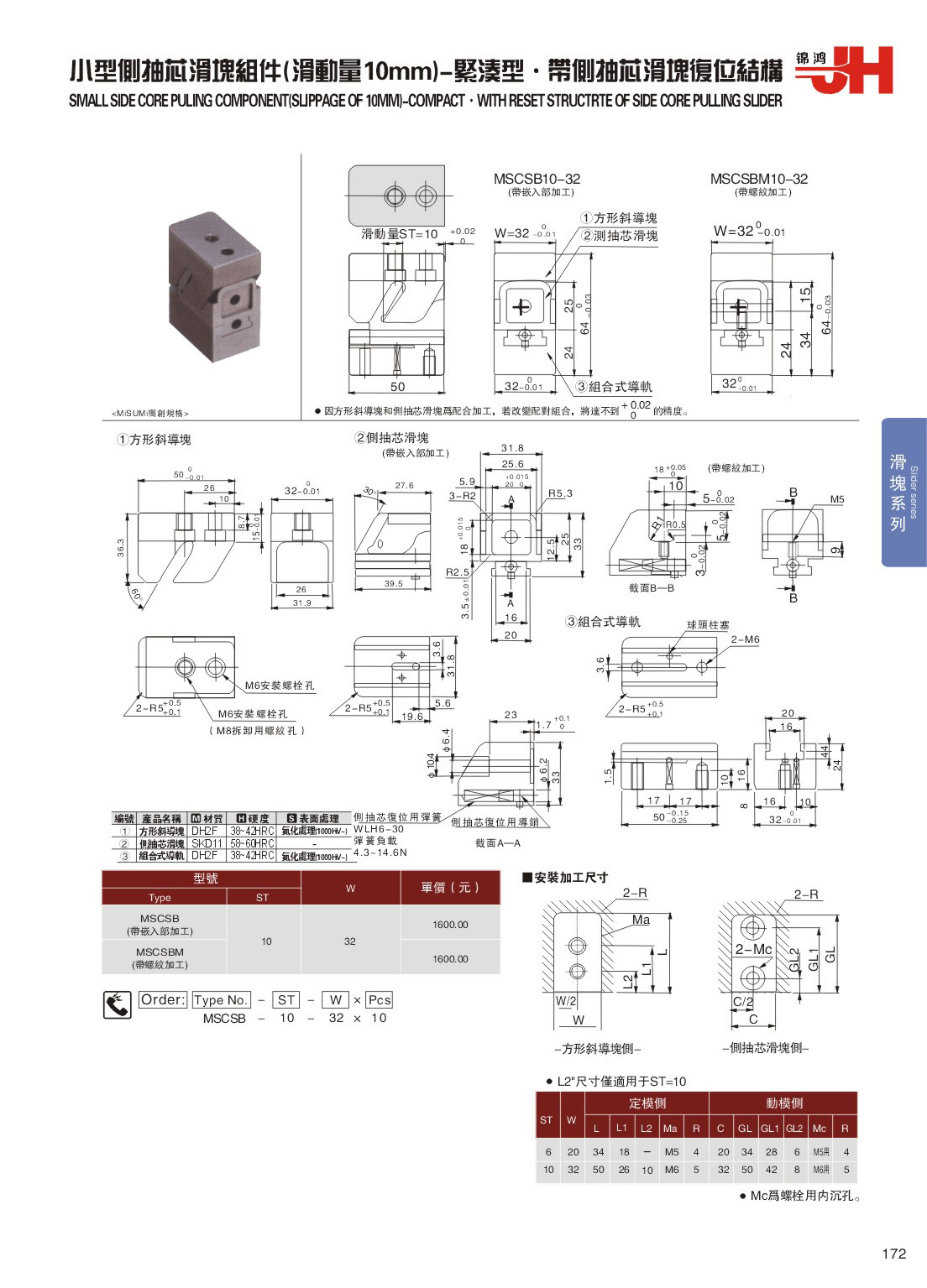 訂購:172-小型側抽芯滑塊組件(滑動量10mm)-緊湊型˙帶側抽芯滑塊復位結構 MSCSB