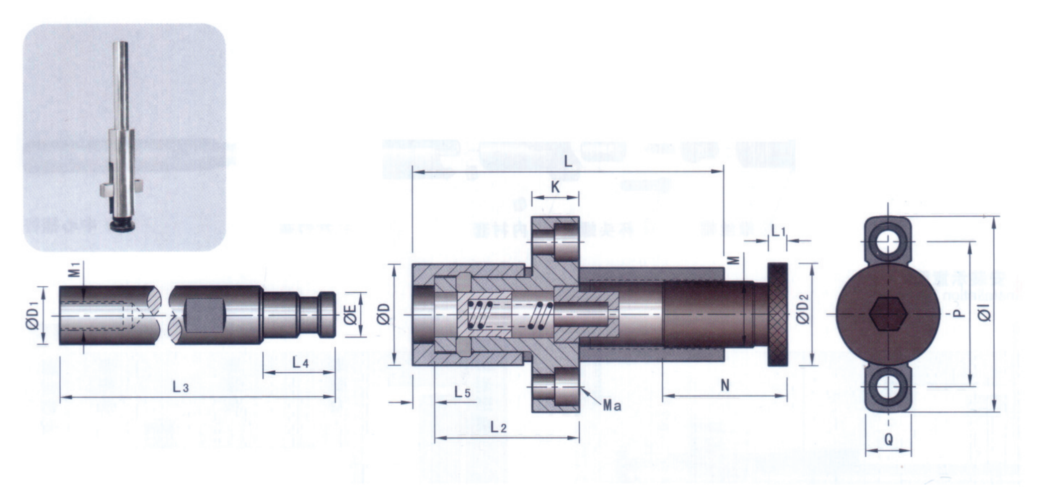 三種直徑尺寸可選,28、34、45MM,根據模胚的尺寸選擇,三種型號都有兩個行程范圍及中心桿長度可供選擇;
