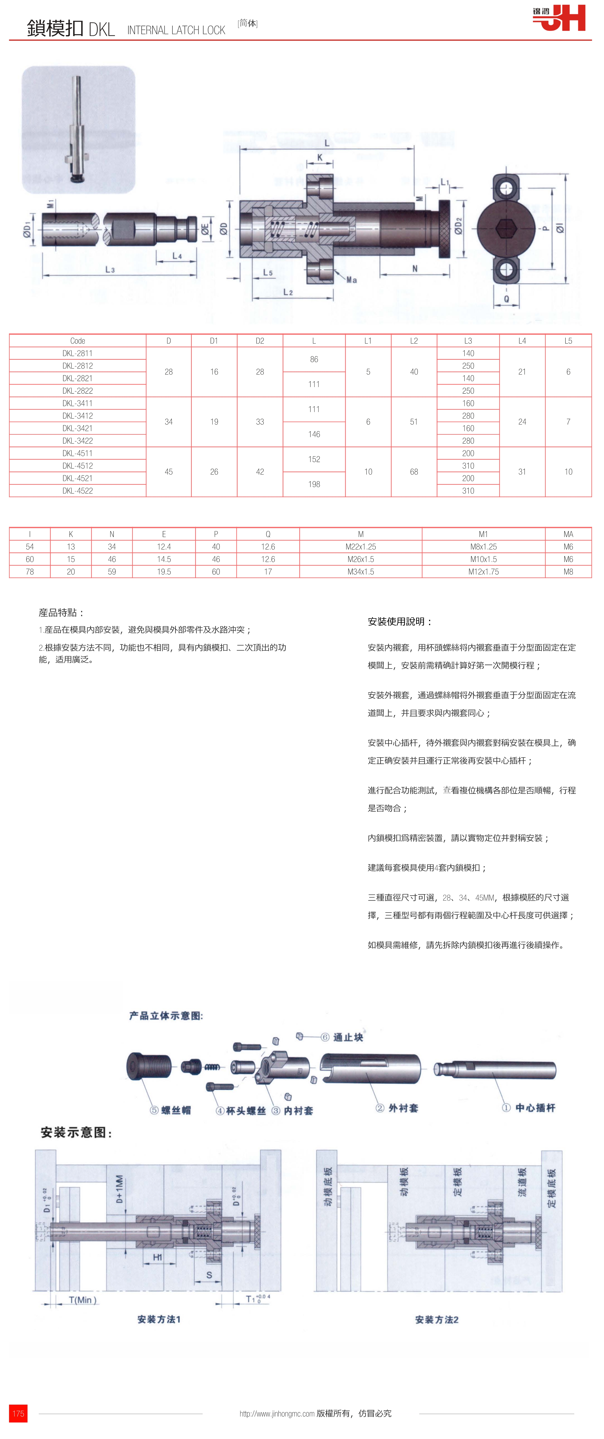 內鎖模扣為精密裝置,請以實物定位并對稱安裝;