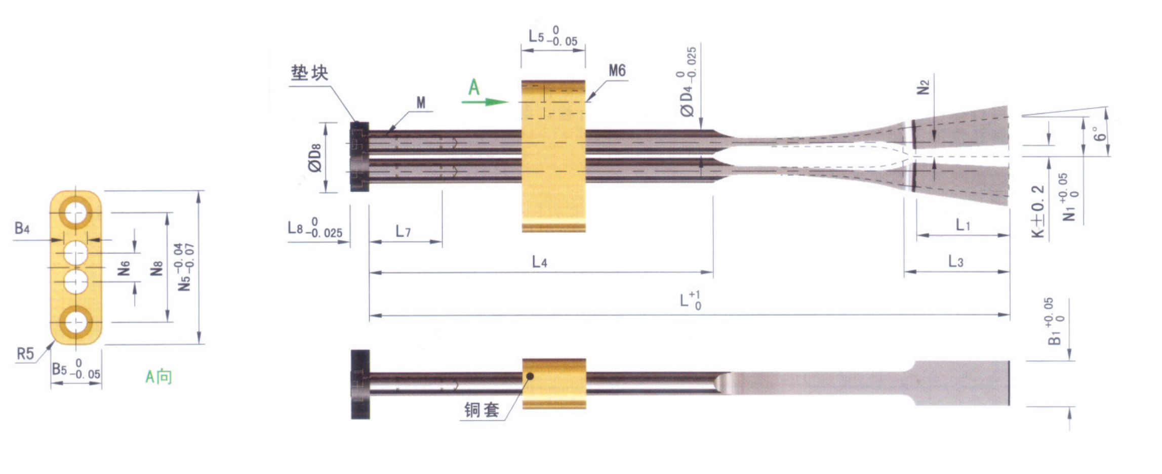3.此款彈弓頂針?biāo)行吞?hào)都配有墊塊、銅套以及安裝螺絲;