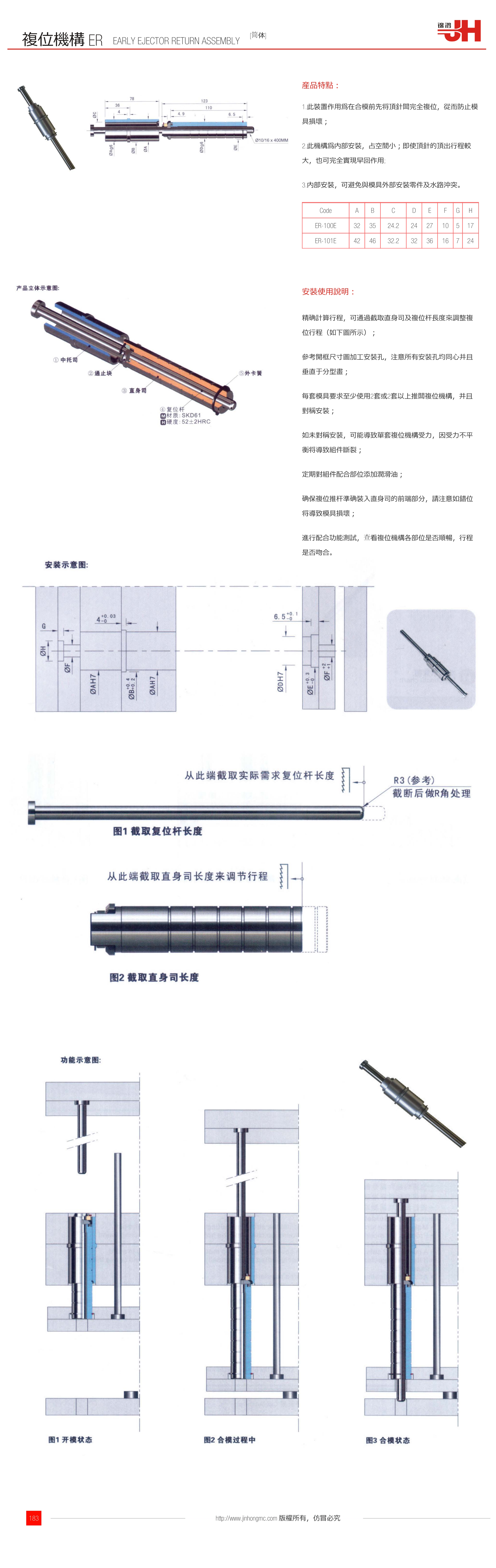 1.此裝置作用為在合模前先將頂針板完全復位,從而防止模具損壞;