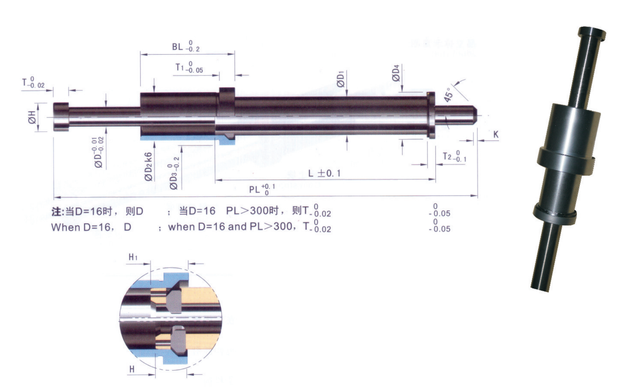 | de | D | D1 | D2 | D3 | D4 | T | T1 | T2 | H | K | BL | L | PL |