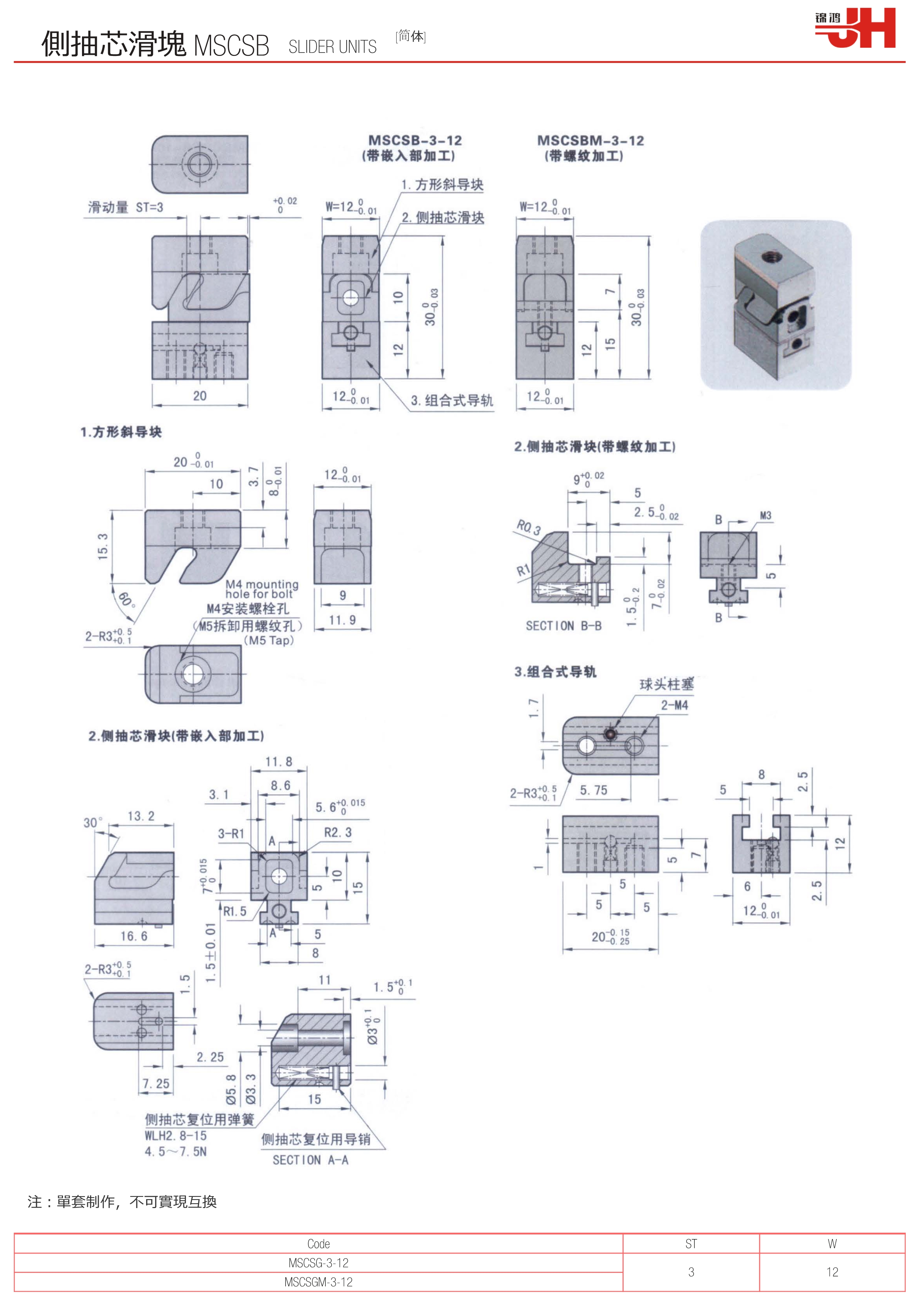 訂購:側抽芯滑塊 MSCSB-1