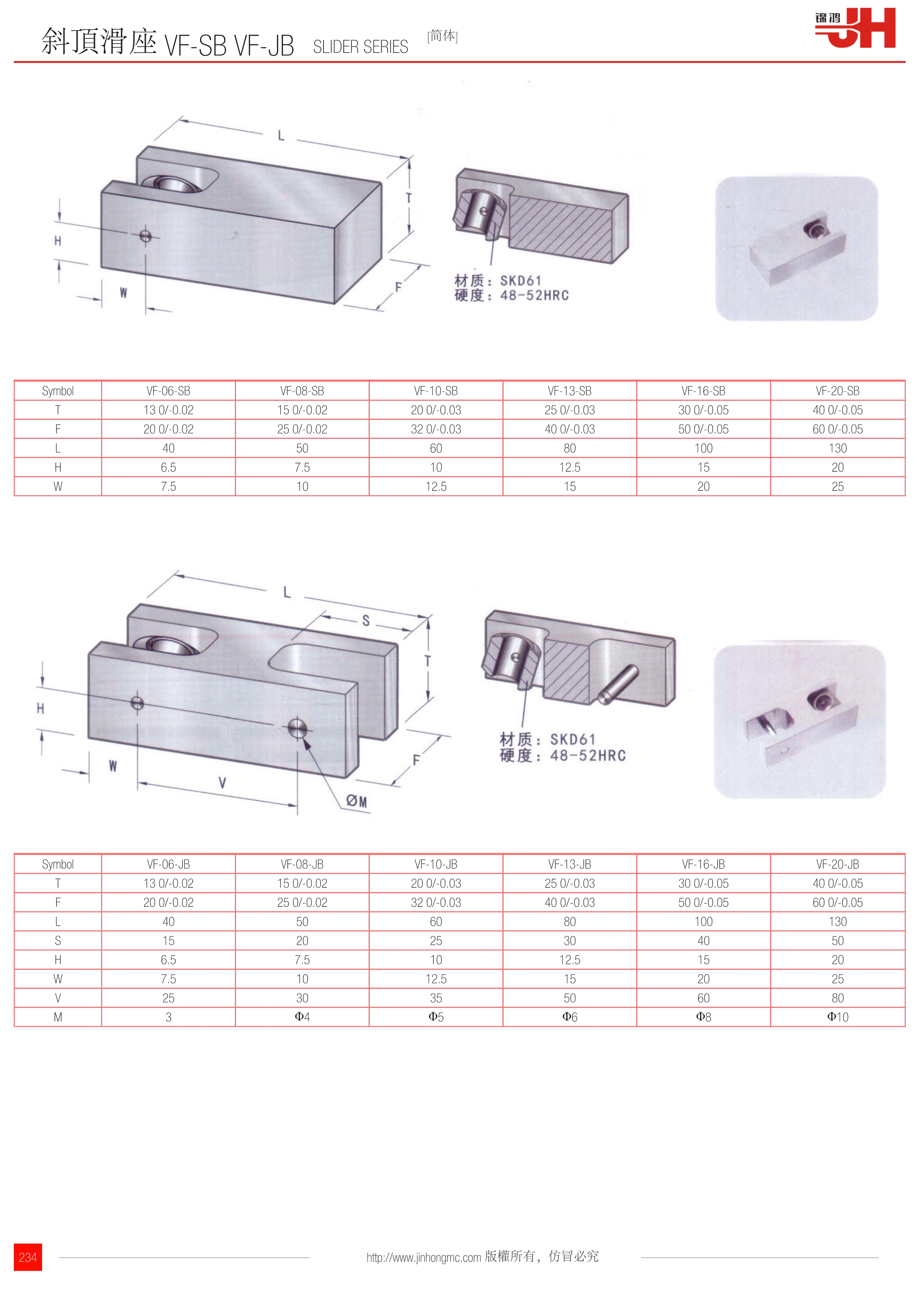 | Symbol | VF-06-JB | VF-08-JB | VF-10-JB | VF-13-JB | VF-16-JB | VF-20-JB |