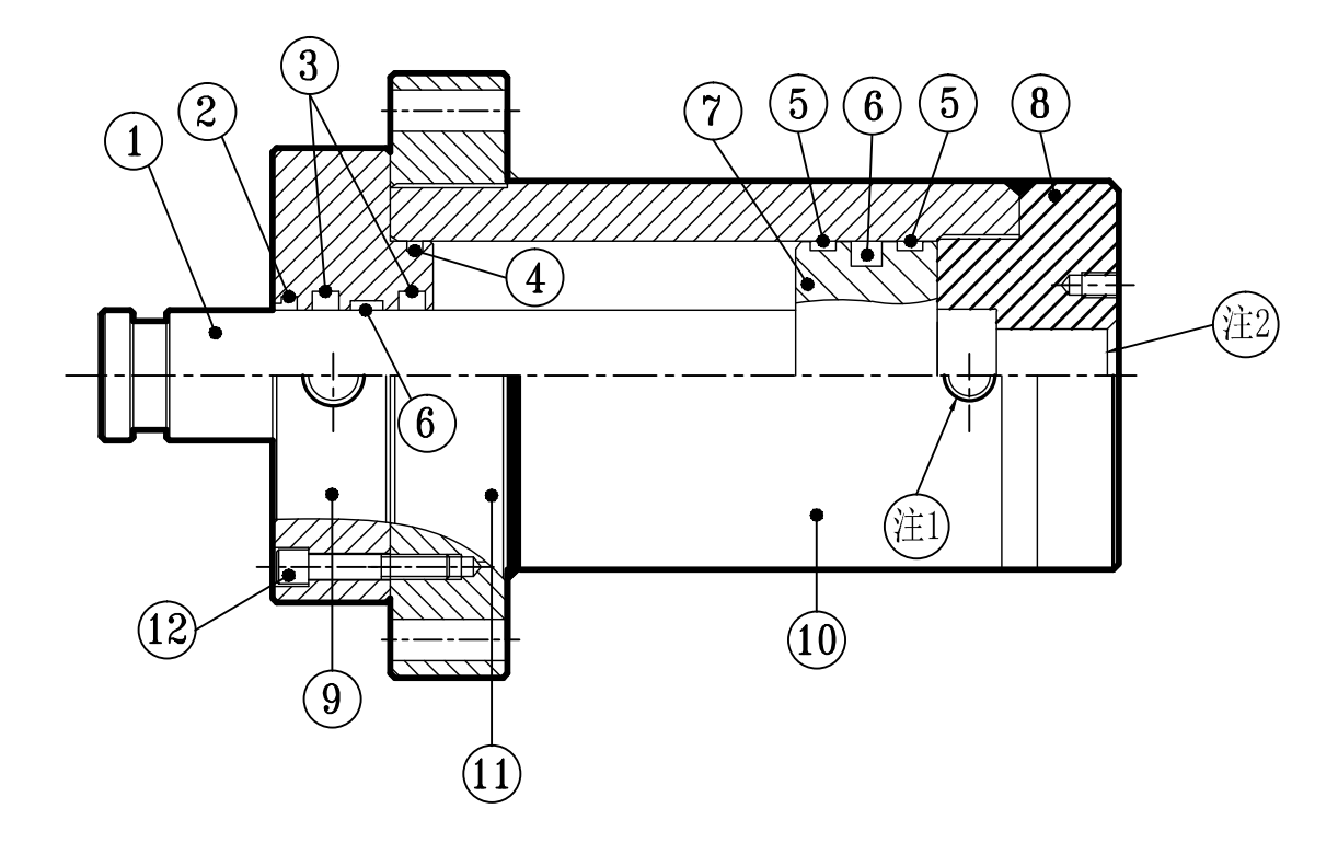 注釋:注1和注2分別是加壓口、充液閥口(如需加工充液閥口,請提供充液閥安裝尺寸) | ||||