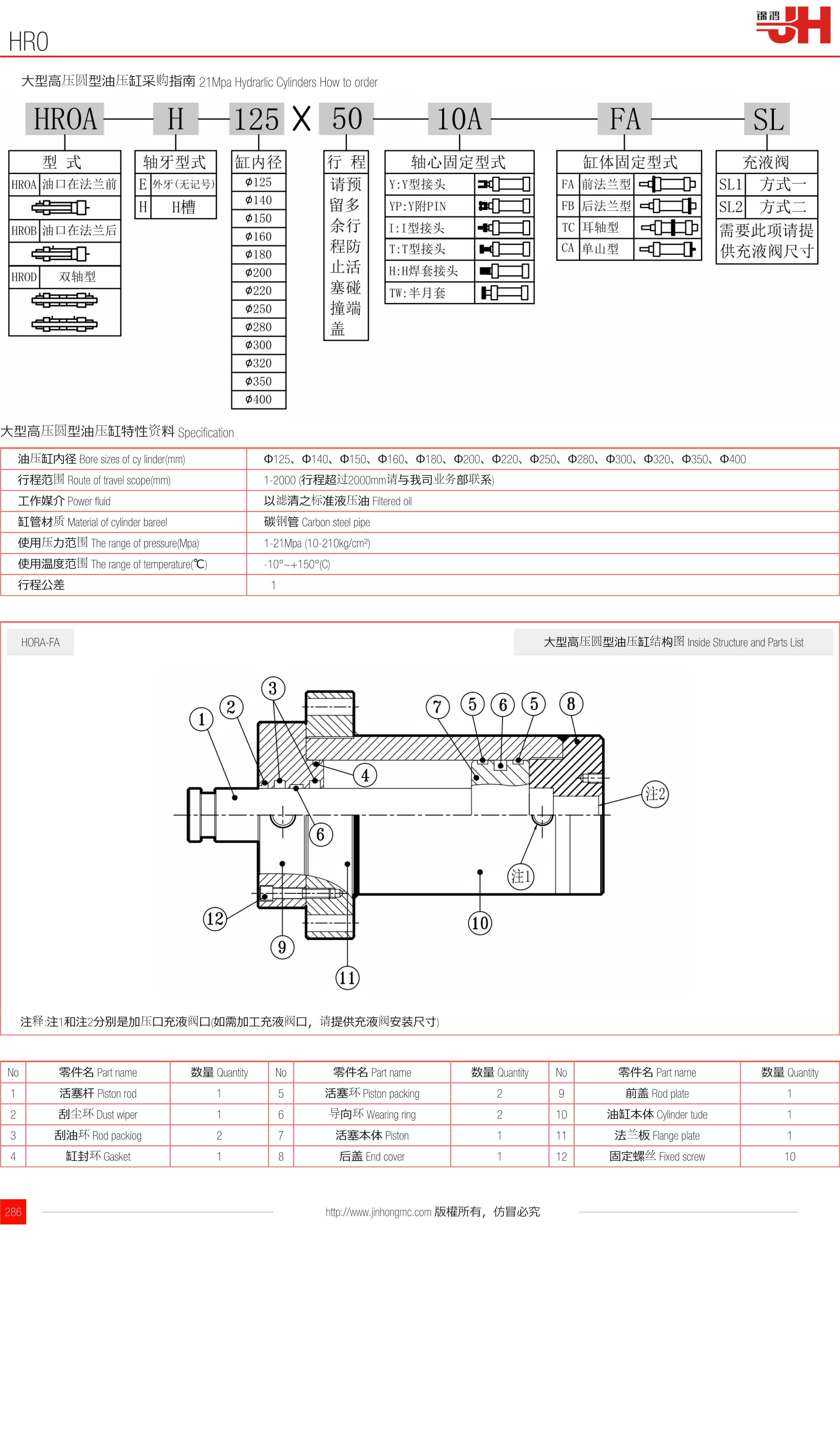 | 油壓缸內徑 Bore sizes of cy linder(mm) | Φ125、Φ140、Φ150、Φ160、Φ180、Φ200、Φ220、Φ250、Φ280、Φ300、Φ320、Φ350、Φ400 |