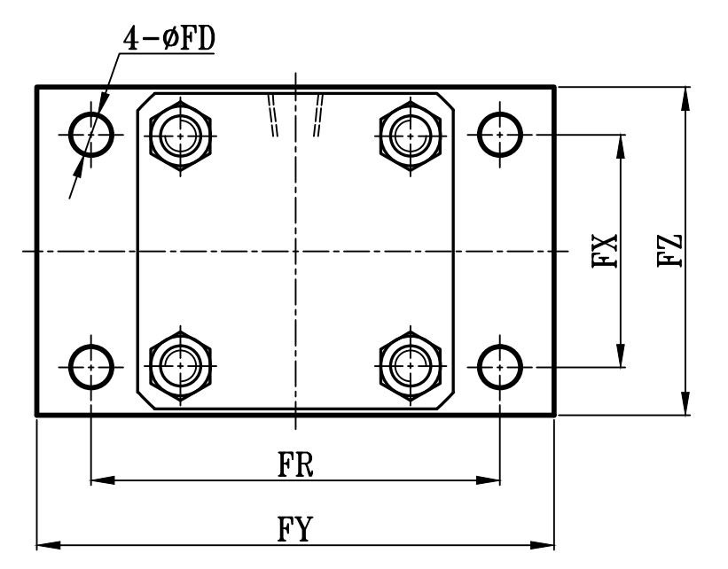 MOB:MOB+FA TYPE | 方型輕油油壓缸FA板尺寸圖 7Mpa Hydraulic Cylinders FA Dimensional Features |