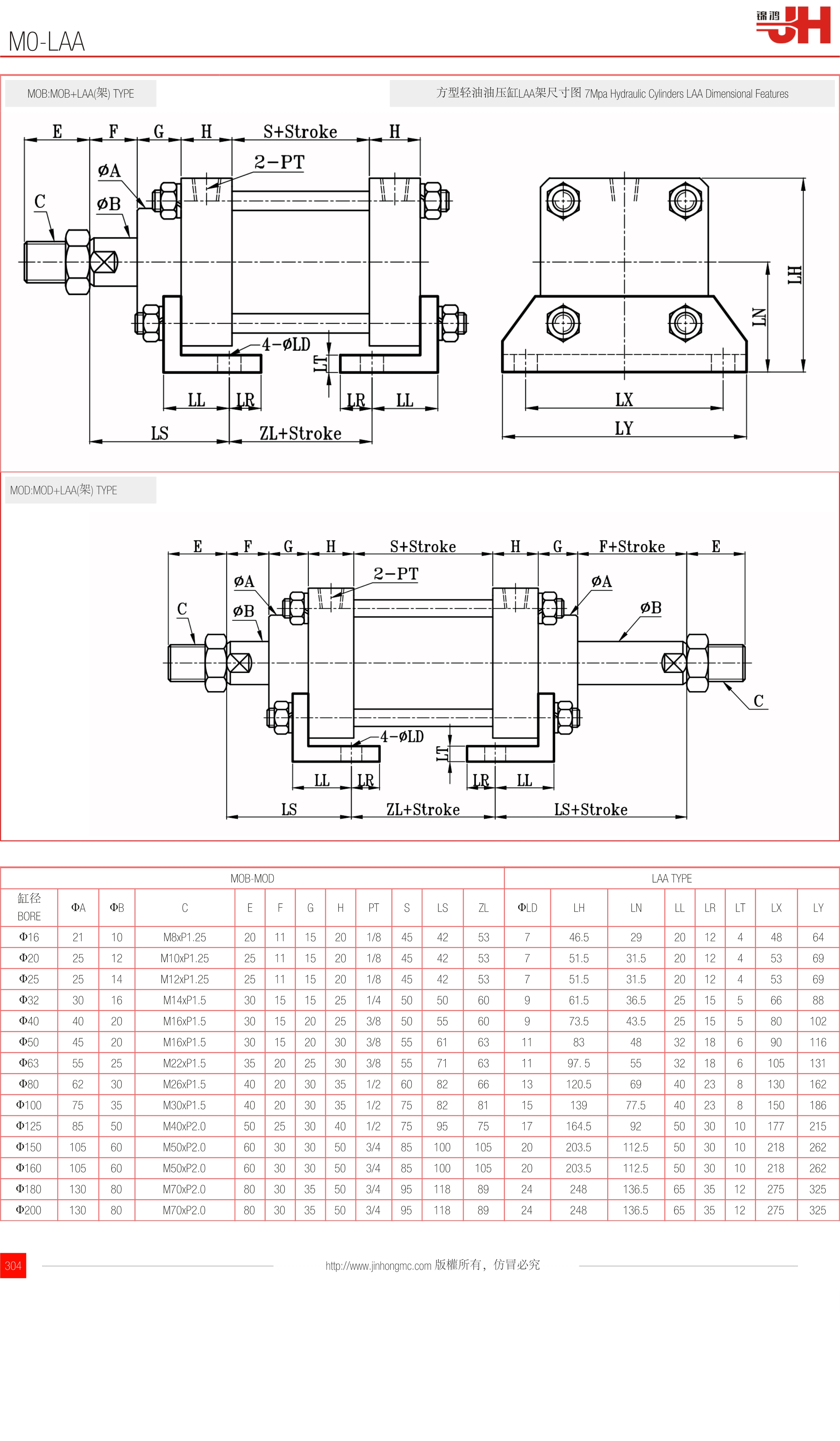 MOB:MOB+LAA(架) TYPE | 方型輕油油壓缸LAA架尺寸圖 7Mpa Hydraulic Cylinders LAA Dimensional Features |