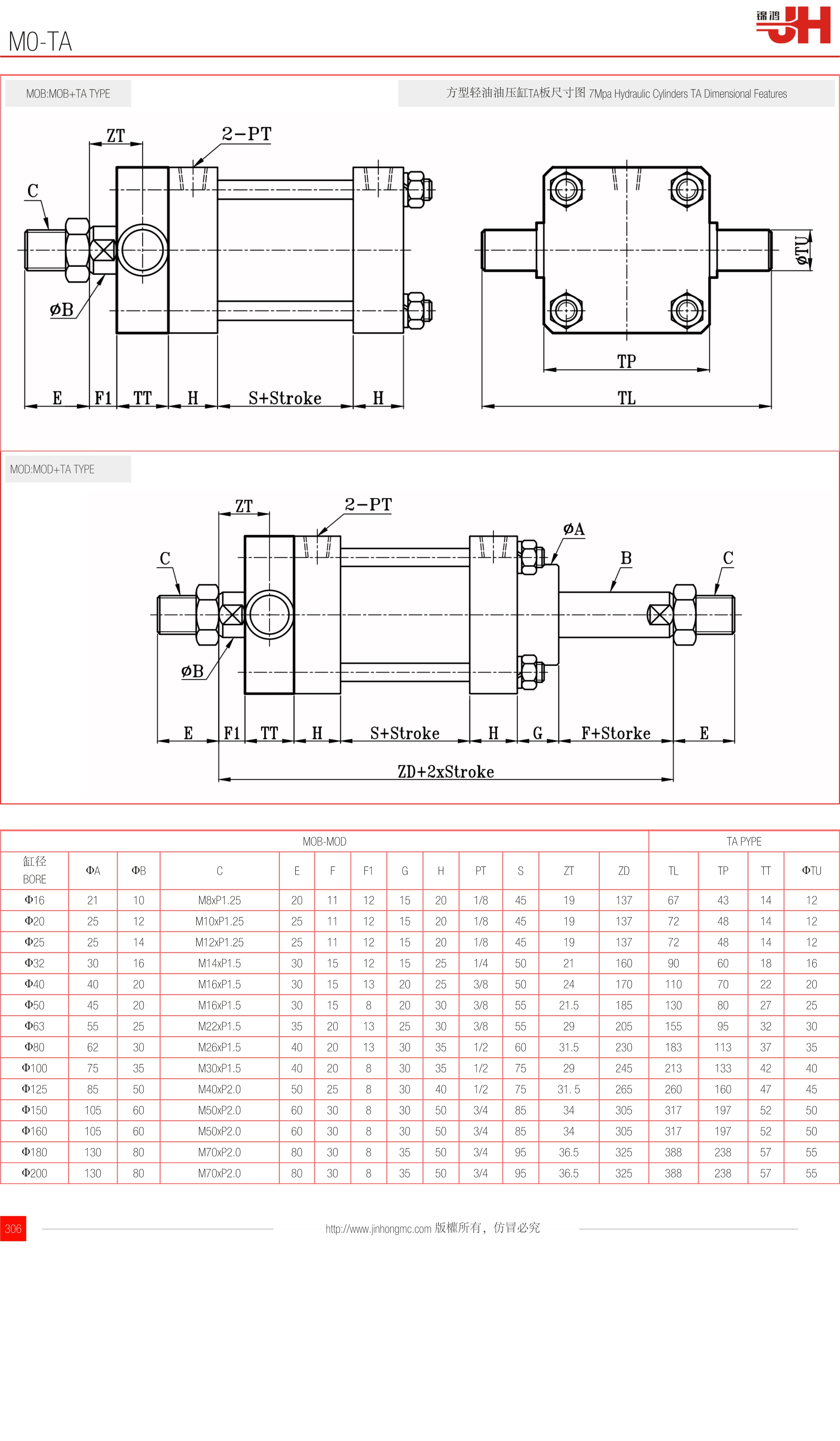 MOB:MOB+TA TYPE | 方型輕油油壓缸TA板尺寸圖 7Mpa Hydraulic Cylinders TA Dimensional Features |