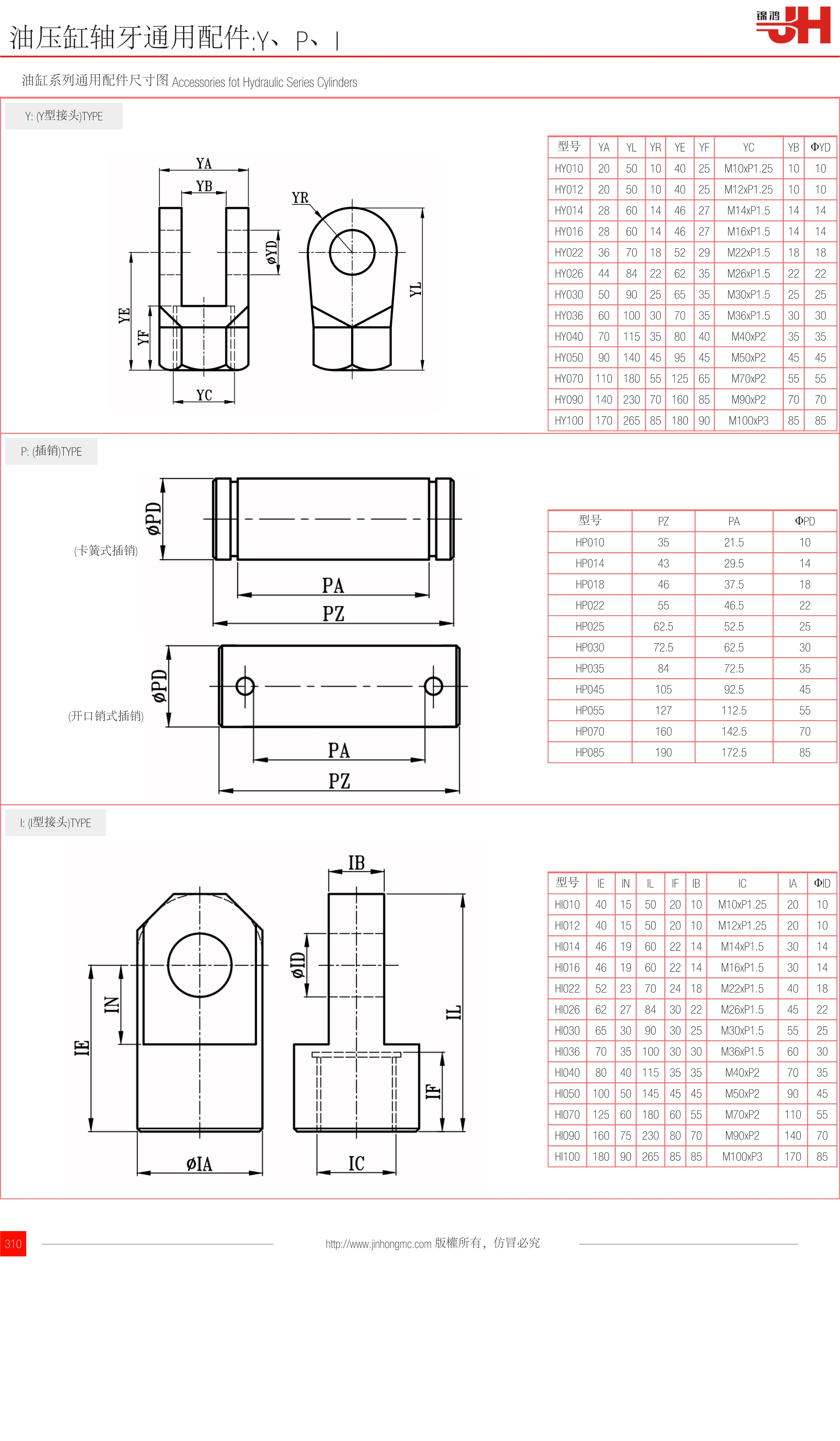 訂購:p62-油壓缸軸牙通用配件:Y、P、I