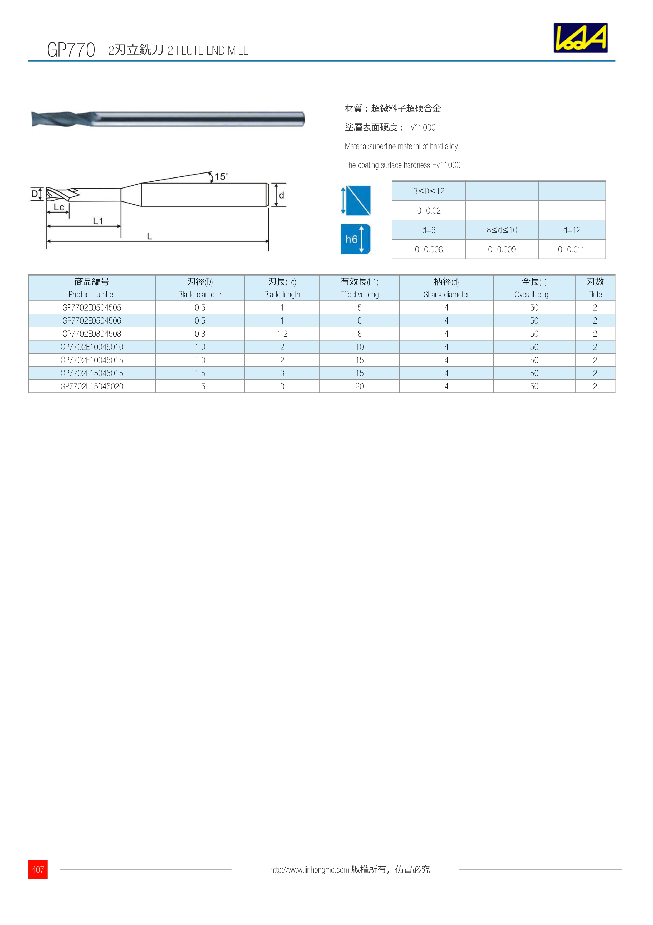 訂購(gòu):gp770-1 2刃立銑刀