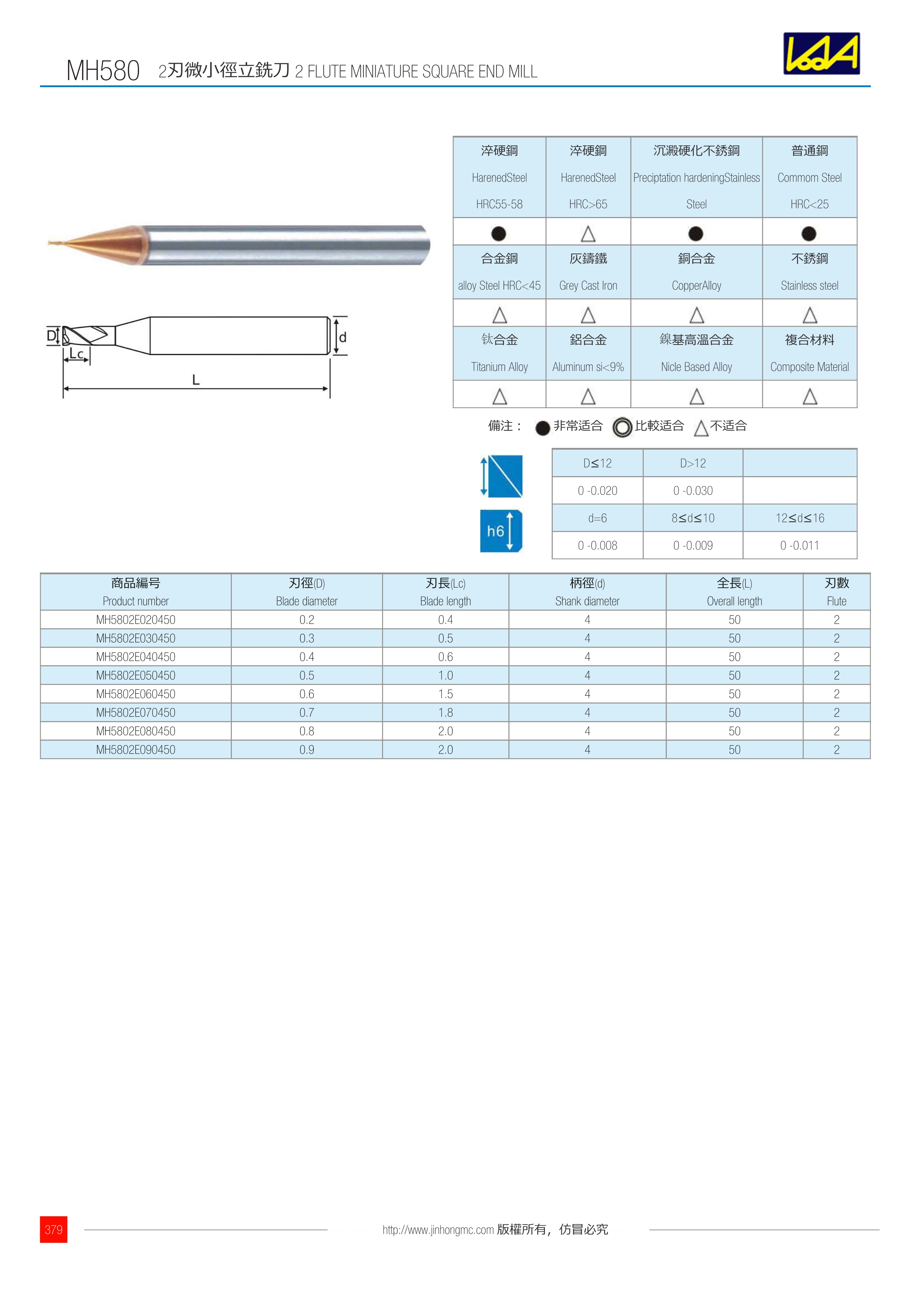 訂購(gòu):mh580-1 2刃微小徑立銑刀