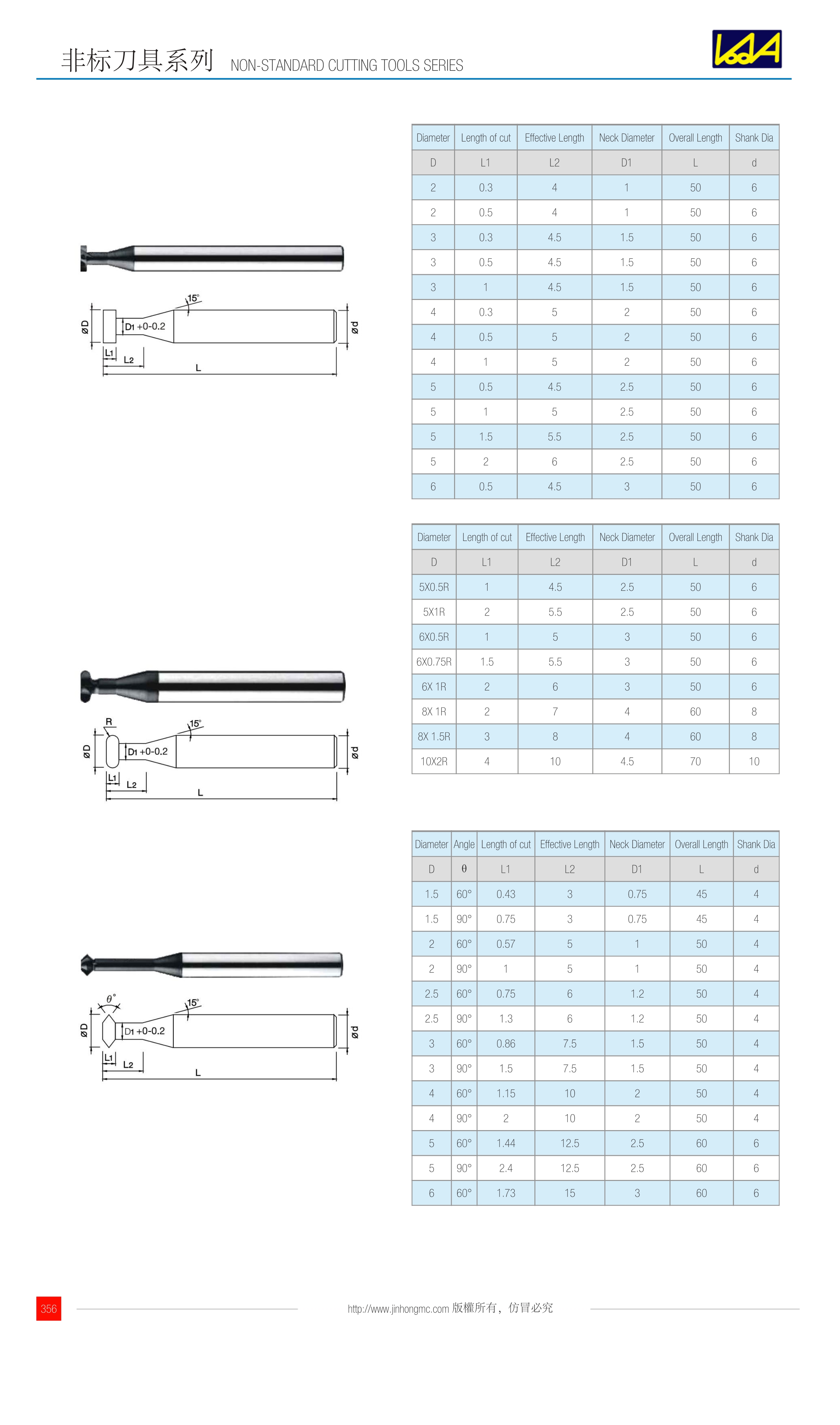 | Diameter | Angle | Length of cut | Effective Length | Neck Diameter | Overall Length | Shank Dia |